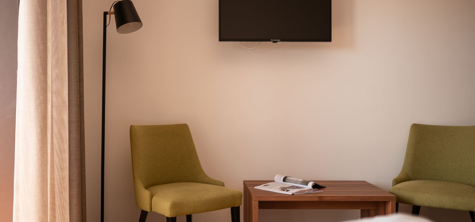 Gemütliche ruhige Doppelbettzimmer zur Nordseite (Parkplatz) mit Sicherheitstüren und Keycard, ausgestattet mit Dusche, WC, Haarföhn, Sat-TV, Telefon, Safe und großem Balkon mit klappbaren Hochlehnern. Einige unserer Zimmer sind barrierefrei.